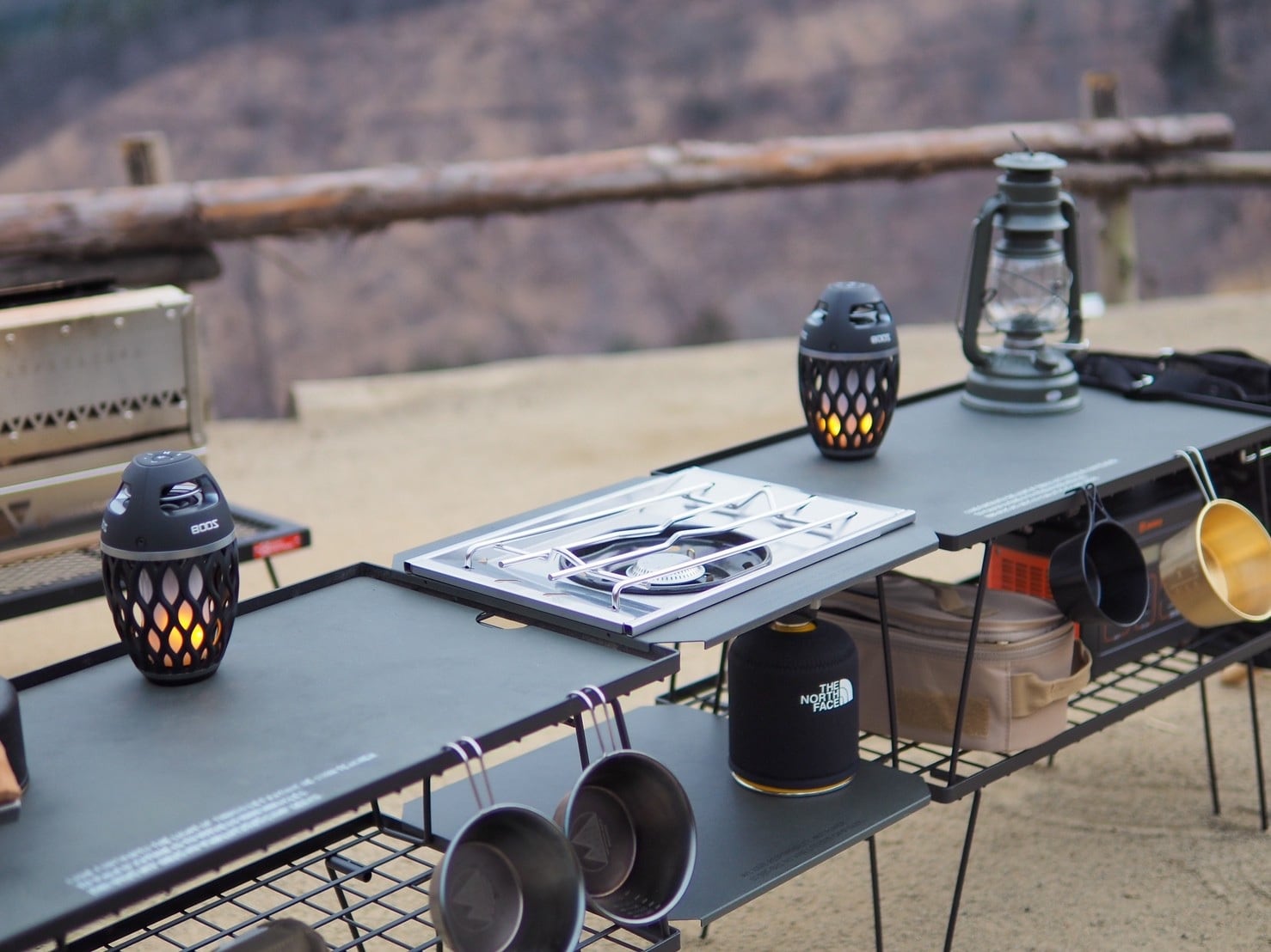 フィールドラックとフィールドラックをリンクさせてスノーピーク社製フラットバーナー(コンロ)をセットさせる為の天板です。