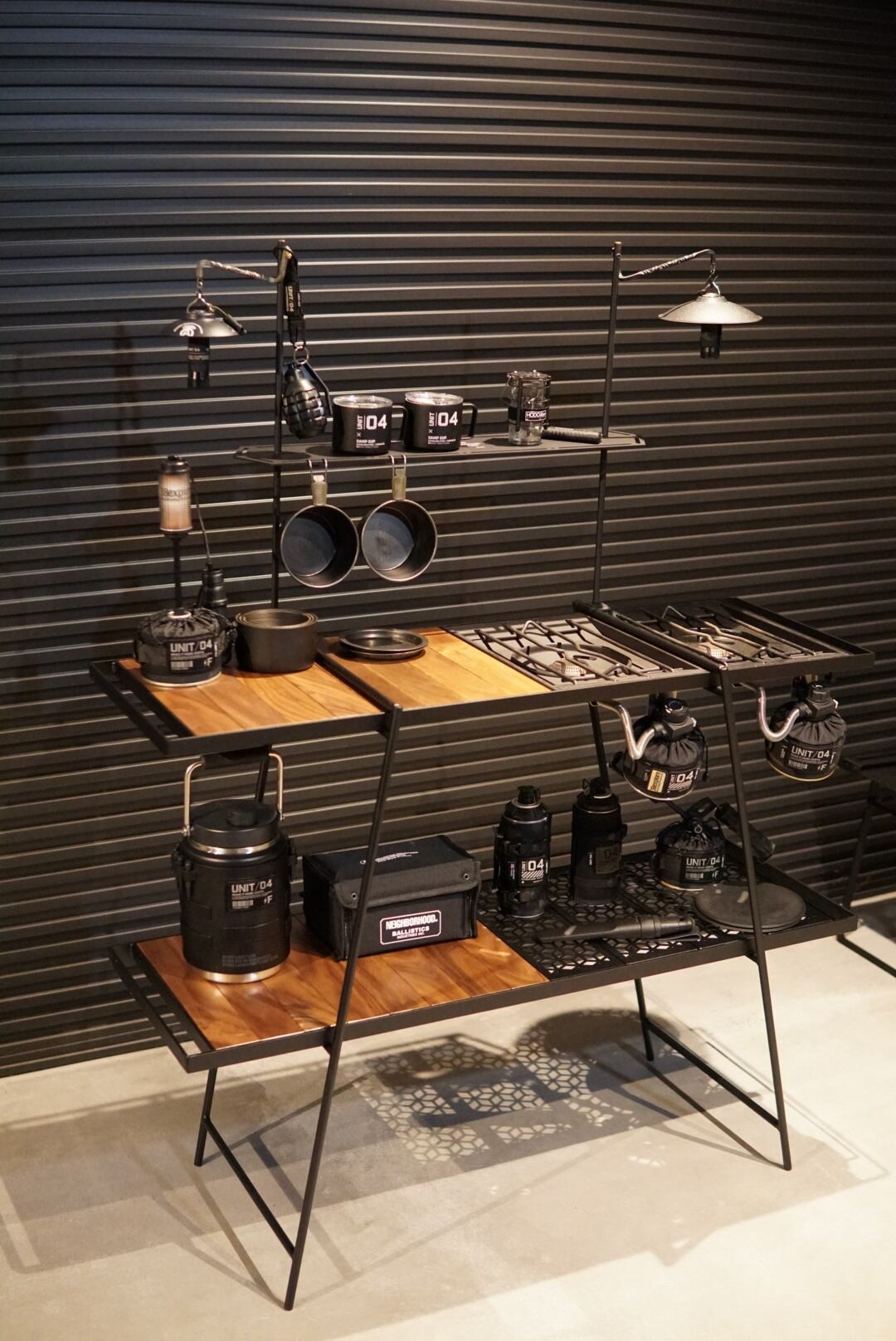 天板1枚のサイズはIGT4ユニット分ですが2ユニット分はウォールナット無垢板をビスで固定しています。