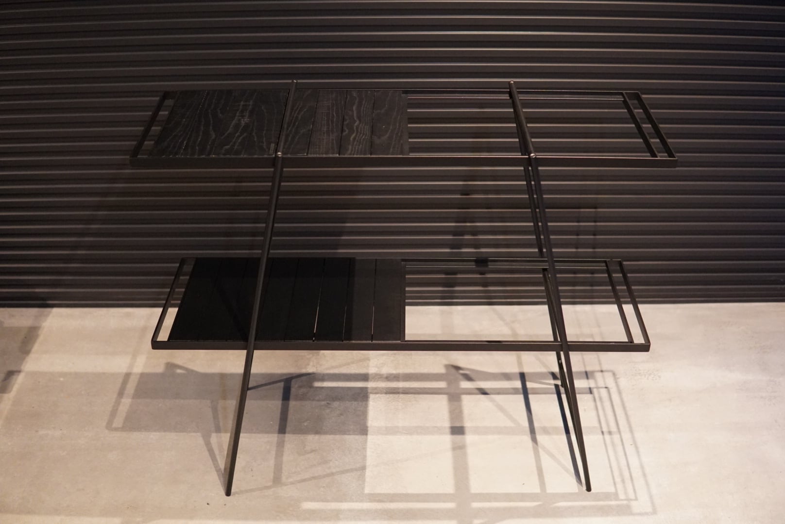 天板1枚のサイズはIGT4ユニット分ですが、2ユニット分はオーク無垢板(ブラックステイン)をビスで固定しています。